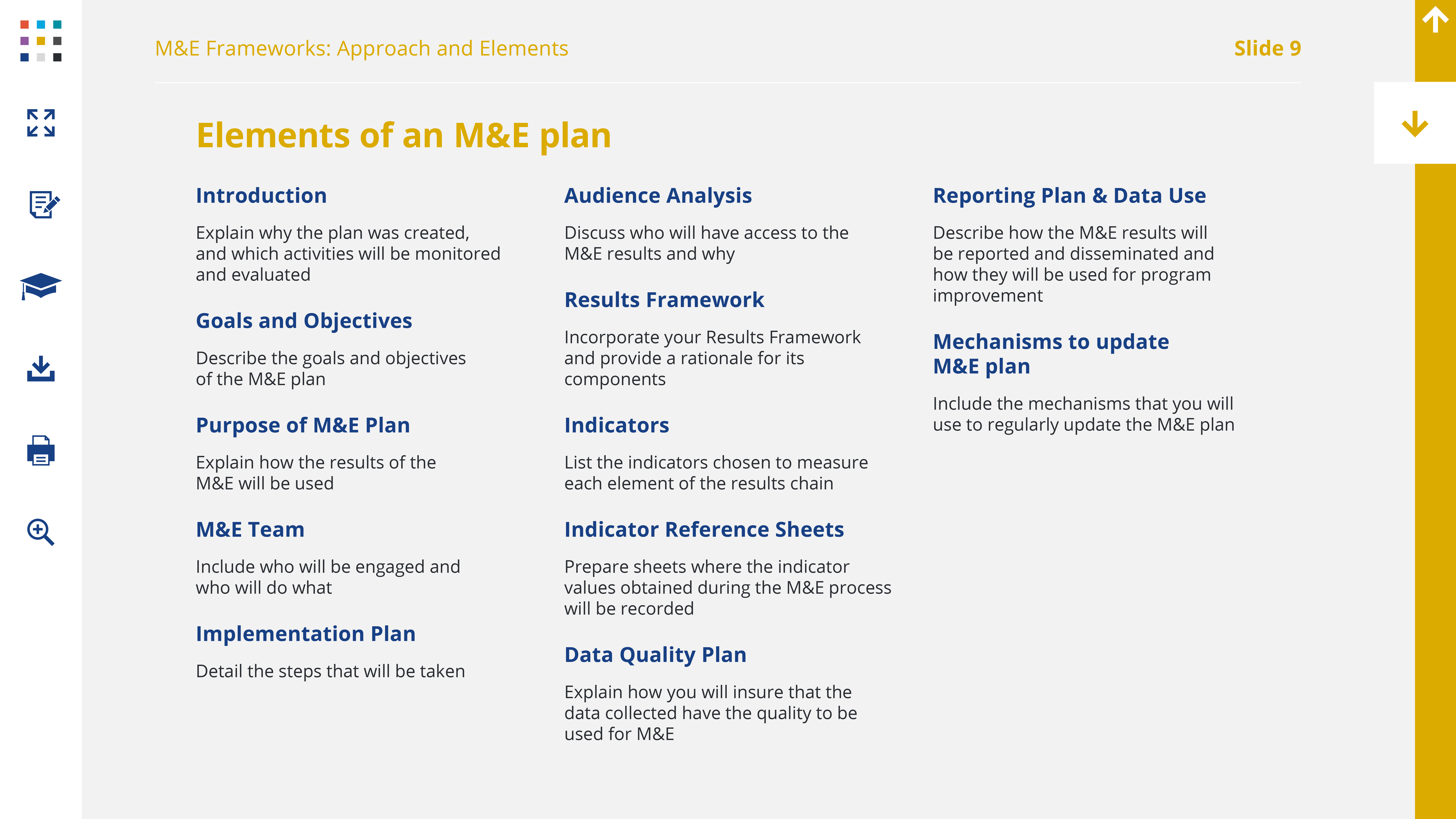 1. Elements of an M&E Framework