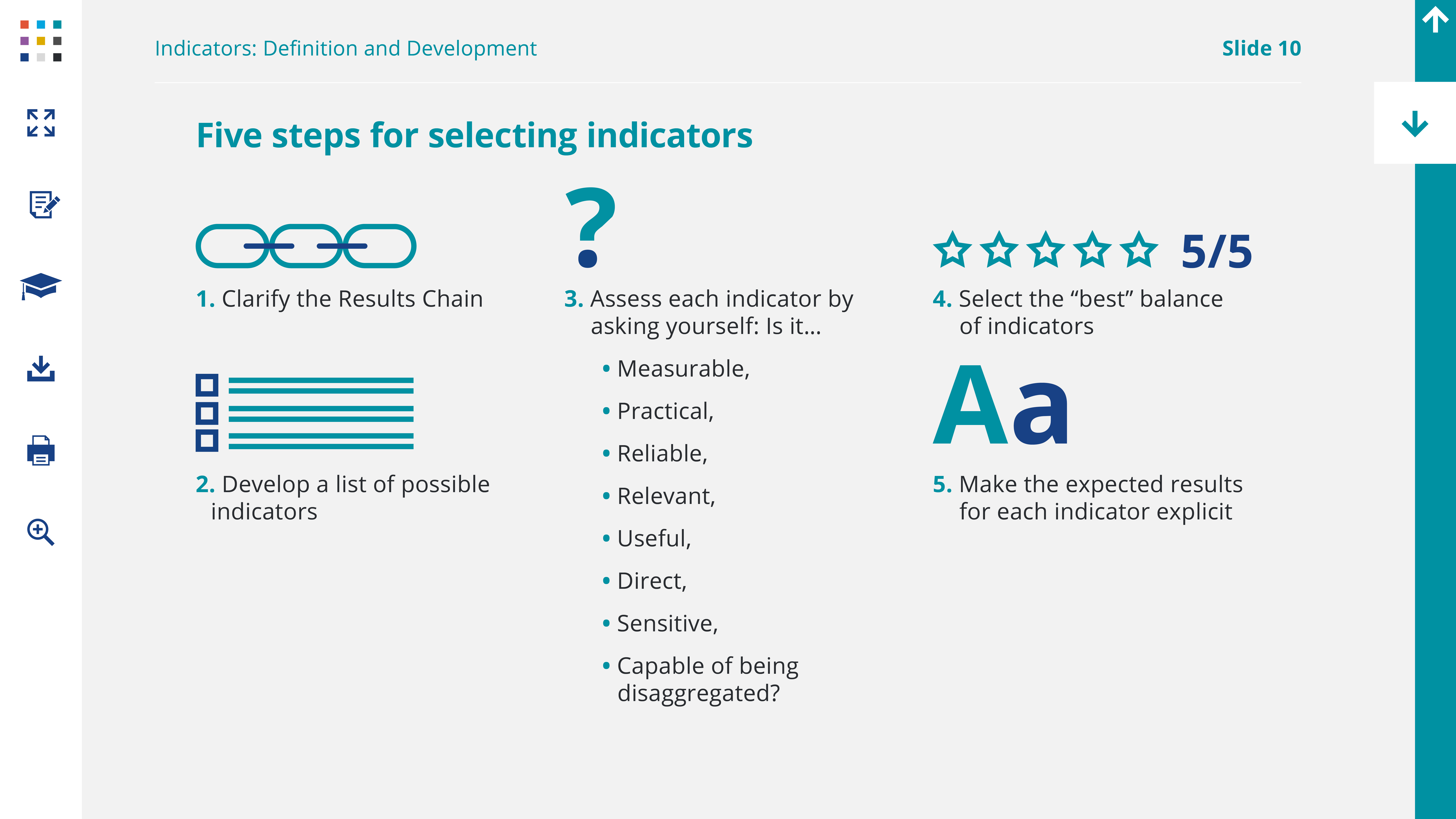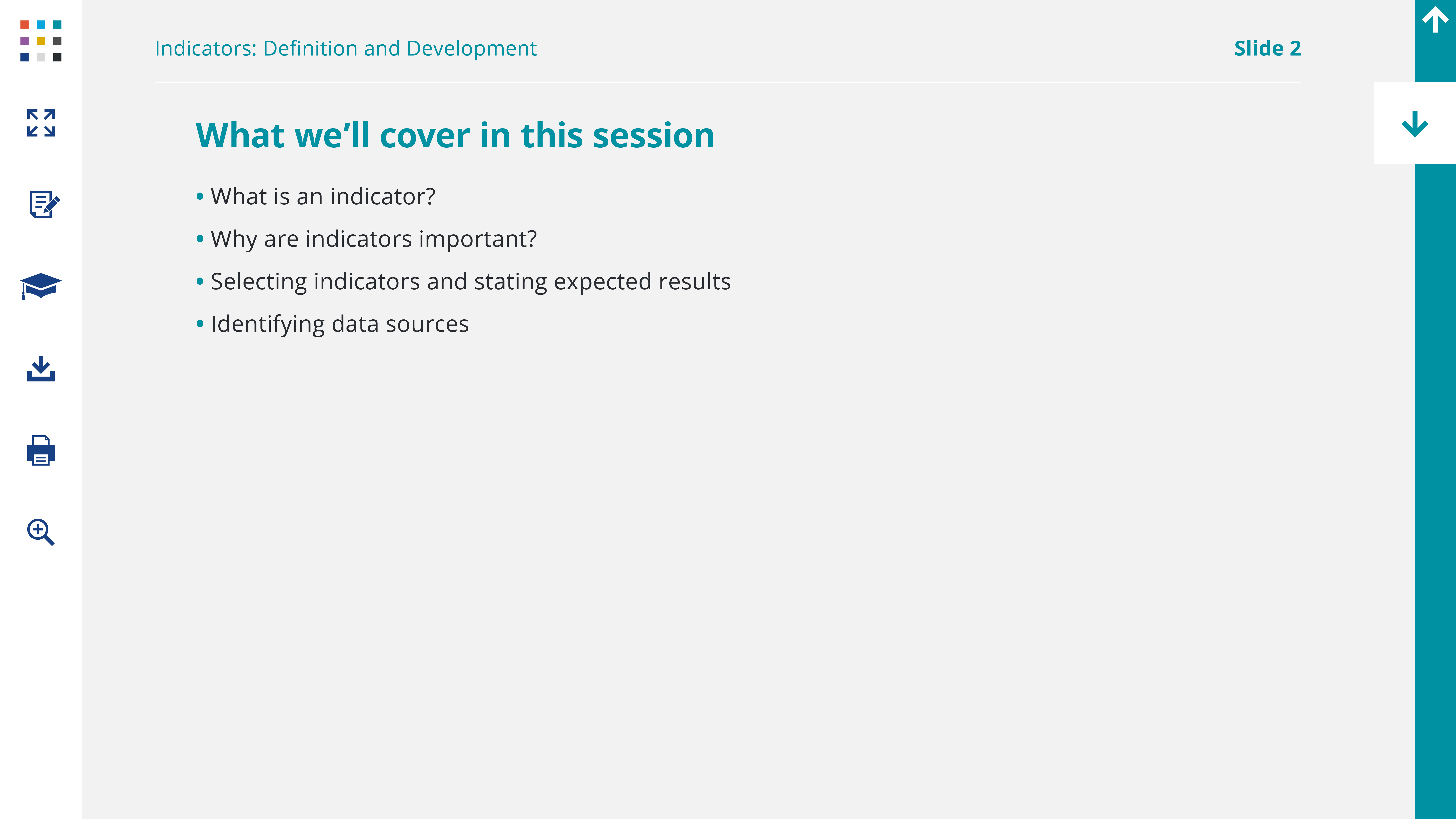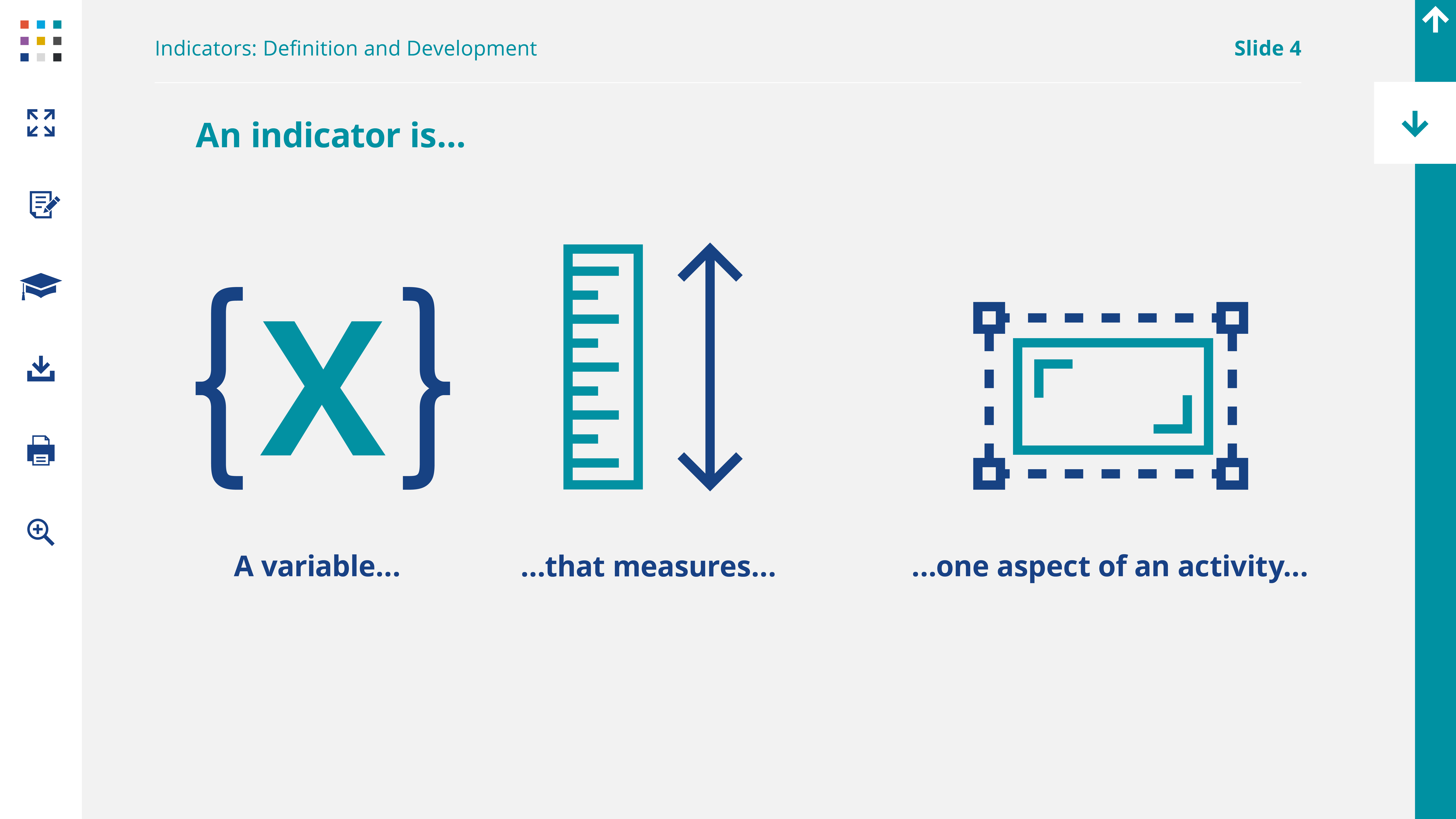 In this session, we will talk about what an indicator is and how to develop and select them for your activity.