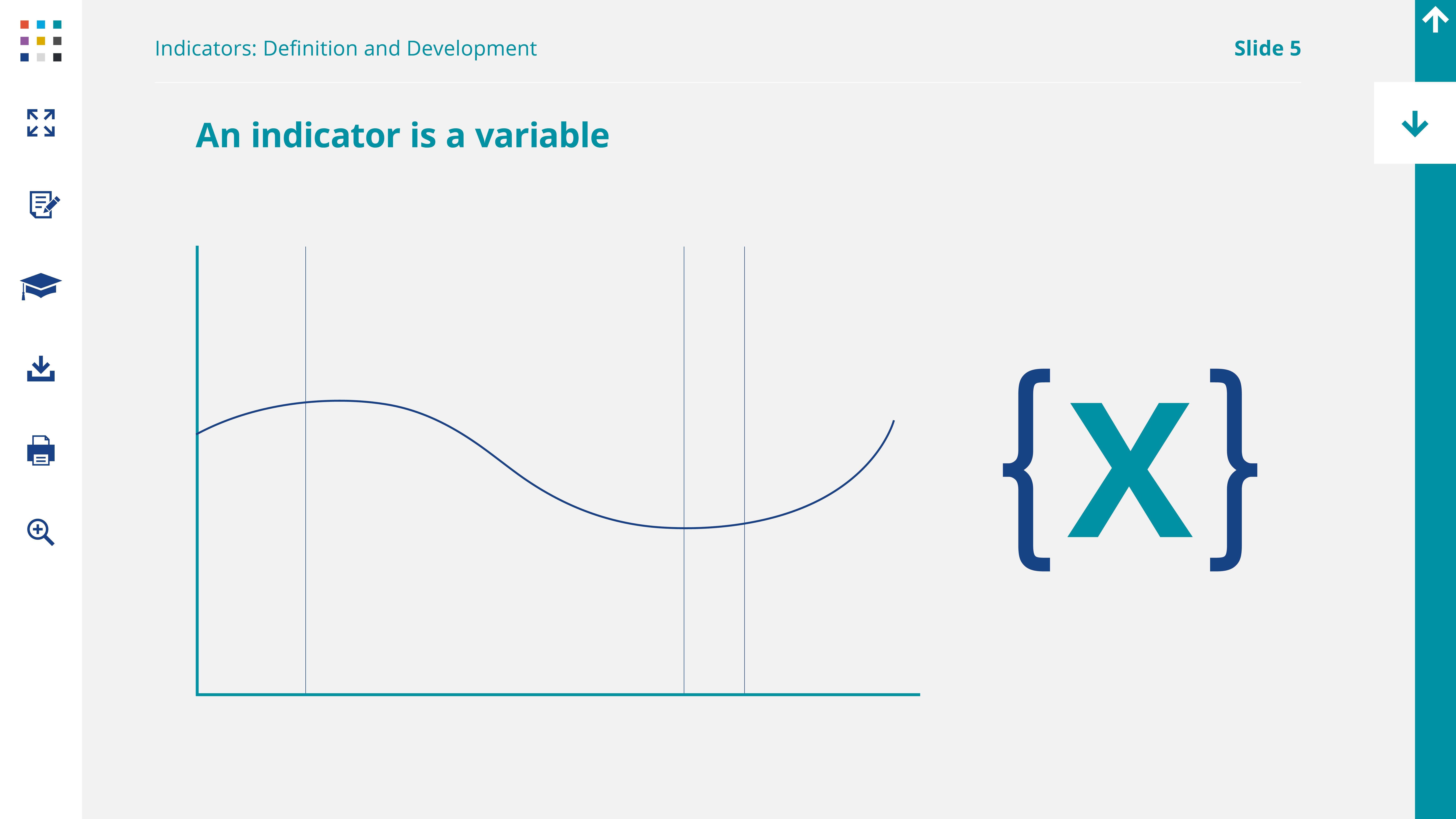 Indicators measure resources, results, or change. So, a good indicator must be measurable. It’s important to keep this in mind as you design your indicators.